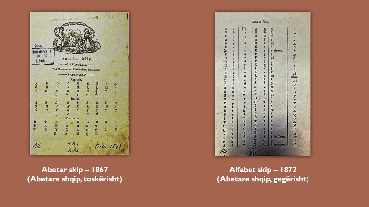 Në ditën e Alfabetit të Gjuhës Shqipe sjellim sot abetaret e përpiluara nga elbasanasi Kostandin Kristoforidhi. Fill pas asaj të Veqilharxhit, Kristoforidhi përgatiti dy abetare; një në toskërisht (1867) dhe një në gegërisht (1872), me alfabet grek e latin. Si lëvrues i shqipes, duke njohur mirë dialektet e saj, ai i përpunoi ato për t’i çuar drejt njësimit pasi ai kishte bindjen se dialektet e gjuhës shqipe nuk kanë ndryshme thelbësore midis tyre, madje mund të bëhet unifikimi i një gjuhe letrare. Me punën e tij për gjuhën shqipe ai parapriu idetë themelore të Rilindjes kombëtare: “Shqipja duhet të shkruhet në këtë kohë që gjendemi sot, të futet në të gjitha shkollat, të botohen libra, të njihemi për komb e vendarë në dhé tonë dhe të kemi pjesë e vend në rrethin e kombeve të tjerë, përndryshe po nuk u bë kjo sot, mbë këtë ditë, nuk do të përmëndet më bir shqiptari e bij shqiptare pas këtij shekulli në shtëpi të Arbërit” (1888).