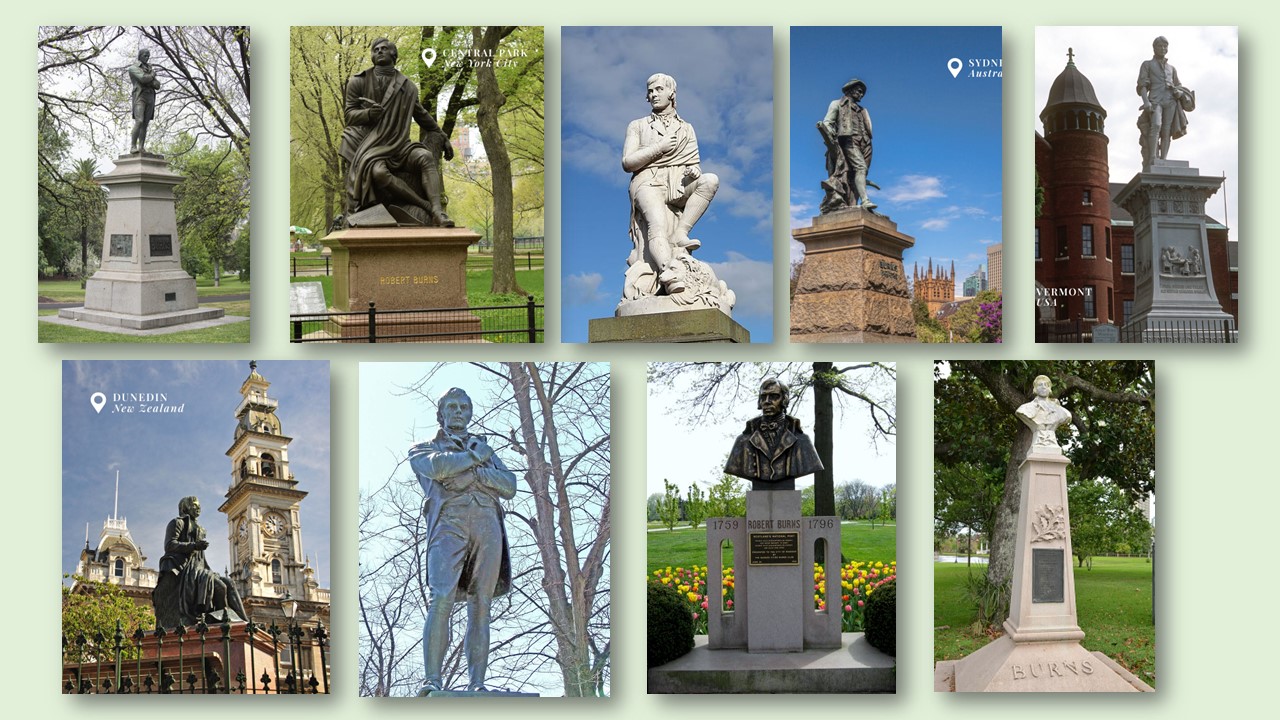 Në foton ilustruese janë përzgjedhur 9 nga 60 bustet dhe statujat e Bërnsit anembanë botës.