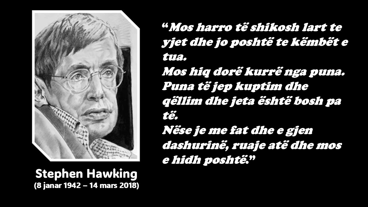 Një mendim nga … Stephen Hawking Almanac, Mendimi i ditës, Të reja Posted on January 8, 2026 by Beneta Dhima 166Views 7Likes ShareFacebookTwitterTumblrE-mail #mendimiidites #bornonthisday Share: