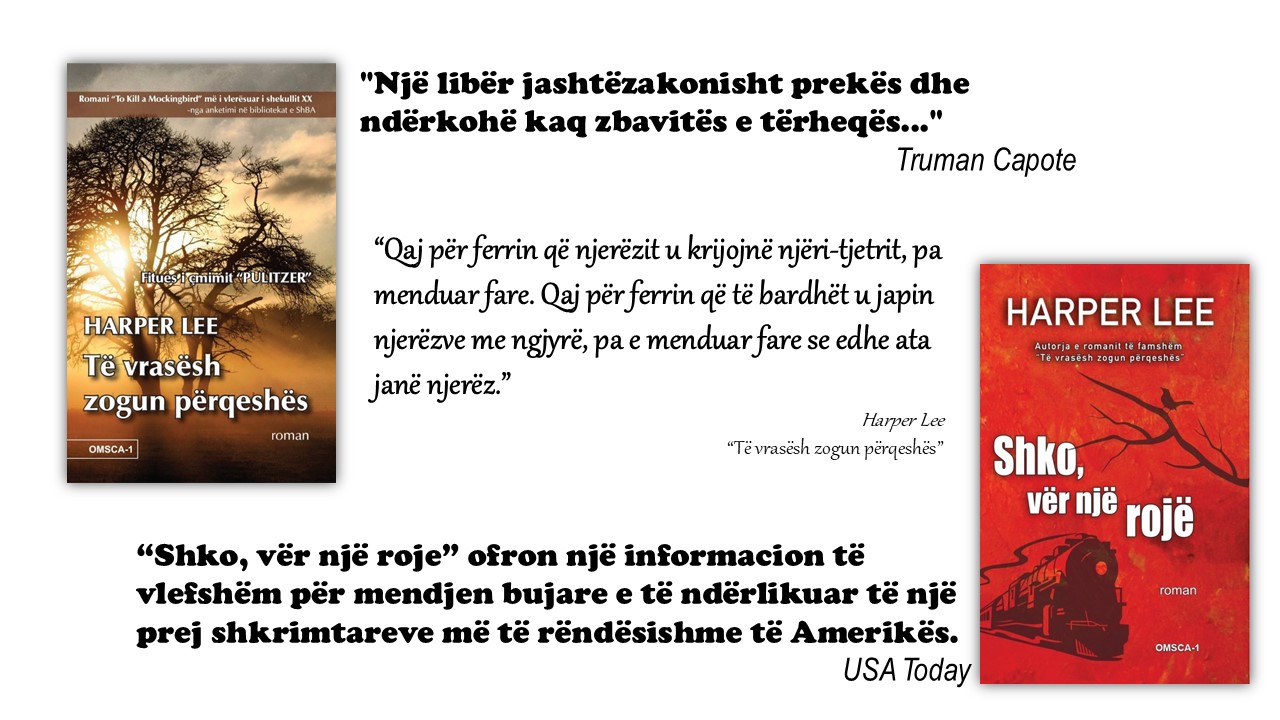 Në 100-vjetorin e lindjes, sjellim sot autoren amerikane Harper Li (Harper Lee ang.) e famshme për romanin e saj “Të vrasësh zogun përqeshës”. Menjëherë sapo u botua, ky roman njohu një sukses të vërtetë dhe vlerësimi me Çmimin Pulizer në vitin 1961 vulosi emrin e Li në historinë e letërsisë botërore. Romani nxori në pah racizmin dhe paragjykimet në Jugun Amerikan. I shitur në më shumë se 40 milionë kopje në të gjithë botën, libri u adaptua në film me të njëjtin sukses. Për kontributin e saj në letërsi, Harper Li u vlerësua me Medaljen Presidenciale të Lirisë si dhe ka marrë shumë diploma nderi. Ajo pati një miqësi të ngushtë me autorin Truman Kapot (Truman Capote ang.) për të cilin thoshte se “I lidh një ankth i përbashkët”. Libri tjetër i saj, i cili u botua në mënyrë kontroverse në vitin 2015, ishte “Shko, vër një roje” (“Go set a watchman” ang.) konsiderohet si vazhdim i romanit të saj të parë.